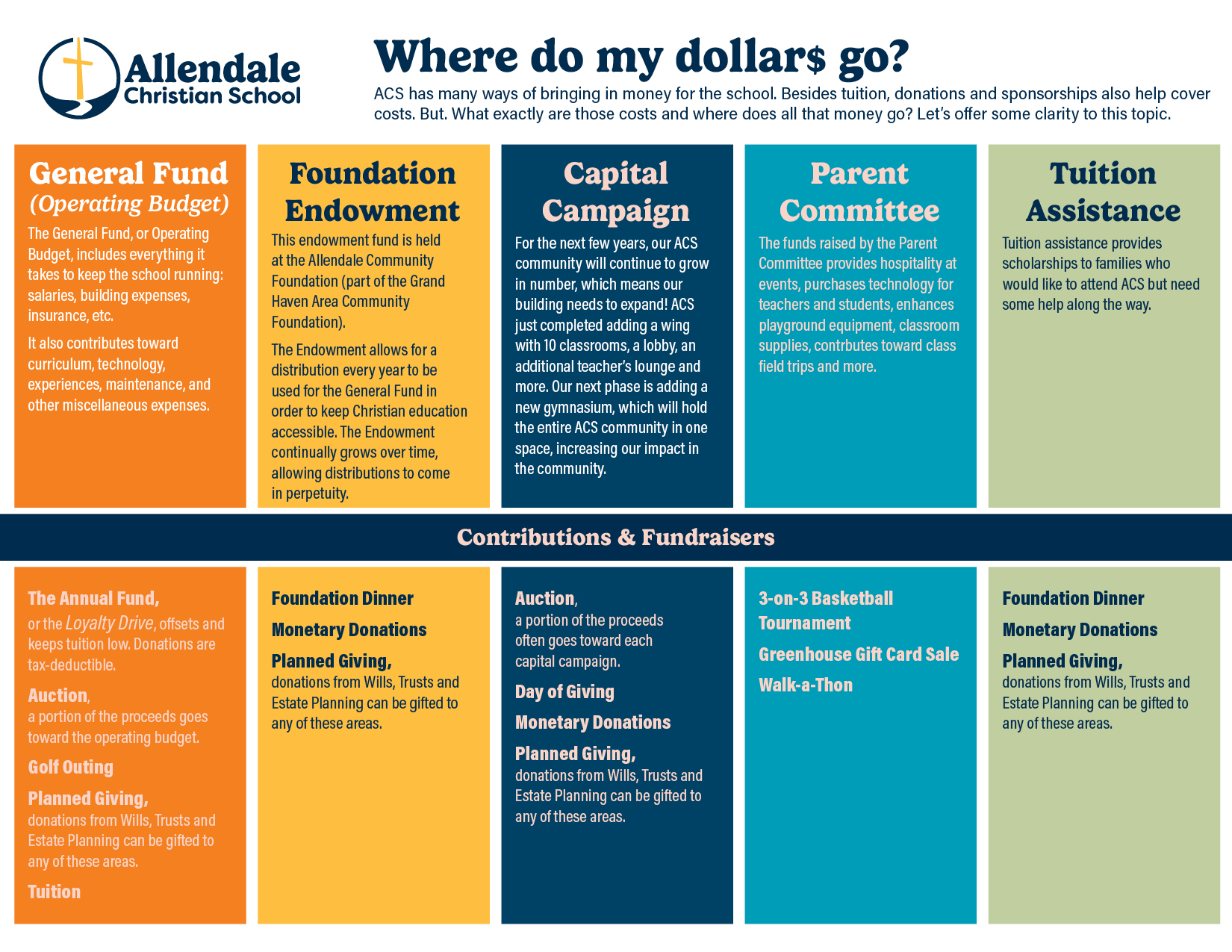 We invite you to explore the many Giving Opportunities to support Allendale Christian School and make an important impact on our students and staff.